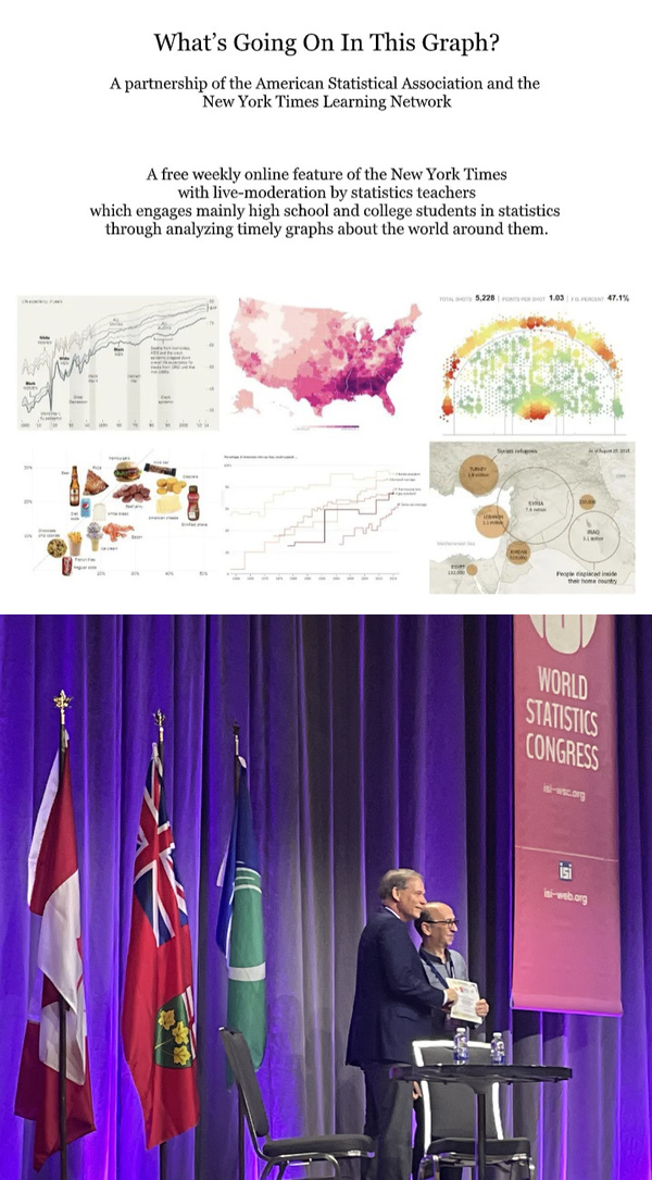 “What's Going On In This Graph?”, a collaboration of the American Statistical Association and the New York Times Learning Network, is an online, free weekly educational feature. Students are asked to share with their classmates and online what they notice and wonder about a previously published graph that relates to their world. Other students and live teacher moderators reply.