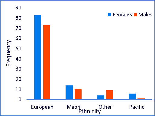 Ethnicity and sex of a small sample of New Zealanders.