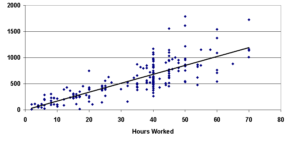 Weekly Income ($) by Hours Worked (first 10 of 200 records)