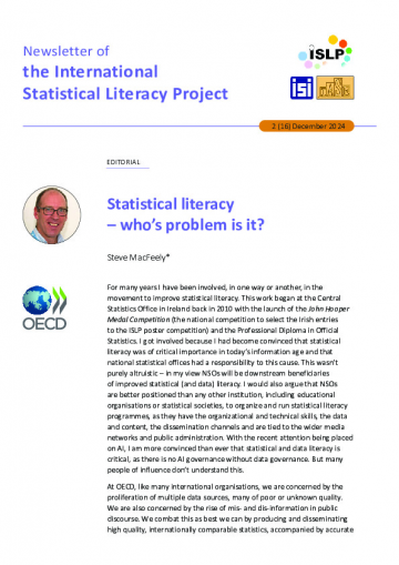 Together with IASE, the ISLP organised a webinar, Statistical and Data Literacy in Policy-Making, on the 7th of December. The webinar was based on the SJIAOS special stream on Statistical and Data Literacy in Policy-Making (Vol 38, No. 2, 2022). You can read more and view the webinar video here➶